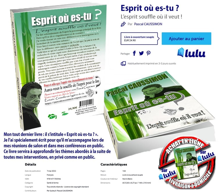 J'ai développé le fait de l'esprit du personnage principal de ce livre. Parce qu'il se dit si singulièrement et de coutume : Esprit es-tu là ? J'ai voulu donner un sens tout différent à cette interrogation en la formulant de la manière suivante : Esprit où es-tu ? Vous lirez à travers cette romance de l'esprit que j'ai pris le soin de faire la différence entre attente et recherche. Voilà bien ce qui m'a animé à écrire ce livre. En se lançant à la recherche de notre esprit nous cheminerons vers la rencontre de la connaissance de soi. Alors que beaucoup attendront toujours, vous, vous parviendrez à ressentir l'esprit même d'une révolution qui s'appelle évolution, parce que vous aurez décidé de scruter votre esprit.